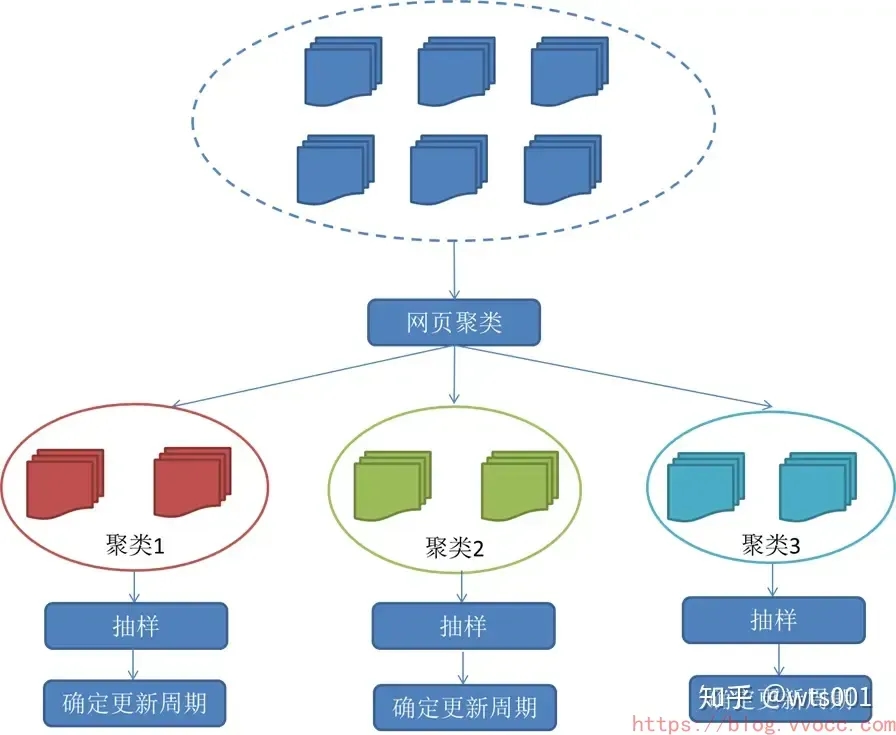 3.聚类抽样策略 前面提到的两种更新策略都有一个前提:需要网页的历史信息。这样就存在两个问题:第一,系统要是为每个系统保存多个版本的历史信息,无疑增加了很多的系统负担;第二,要是新的网页完全没有历史信息,就无法确定更新策略。