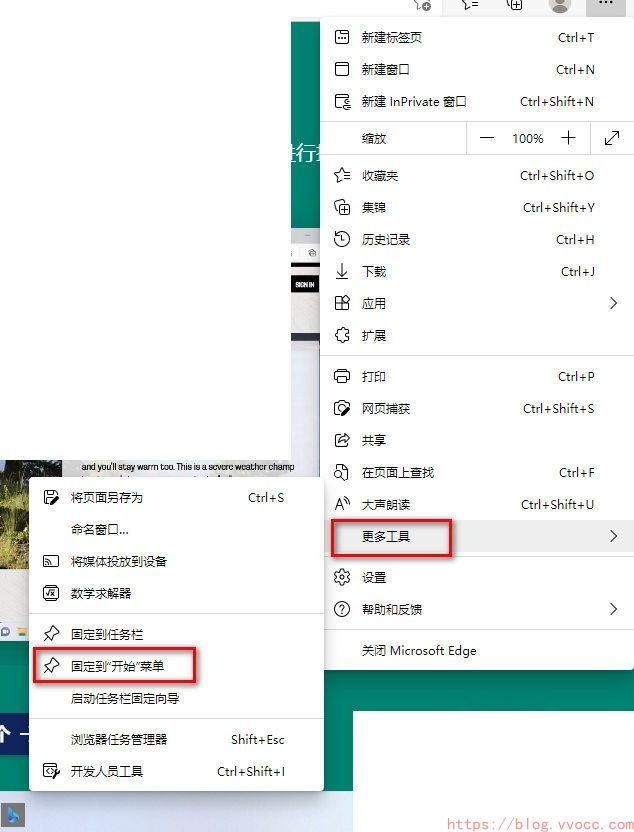 2. 在出现的菜单中,选择 “更多工具”,然后选择“固定到任务栏” 或“固定到开始菜单”,具体取决于你的需求。