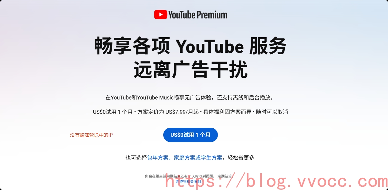 - 直接打开 www.youtobe.com/red,若提示 有图比 Premium 在您所在的国家 / 地区尚未推出, 则 IP 被送中。